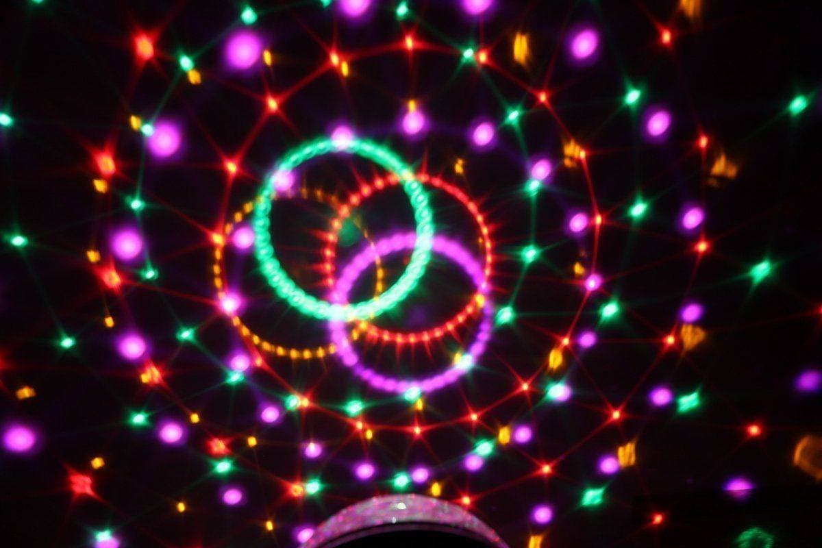Встроенный микрофон! Светомузыка имеет встроенный микрофон, который чутко реагирует в такт музыке и создает эффект стробоскопа. Одной светомузыки хватит, чтобы легко осветить сотню квадратных метров площади дома, квартиры, танцпола, сцены, кафе или клуба.